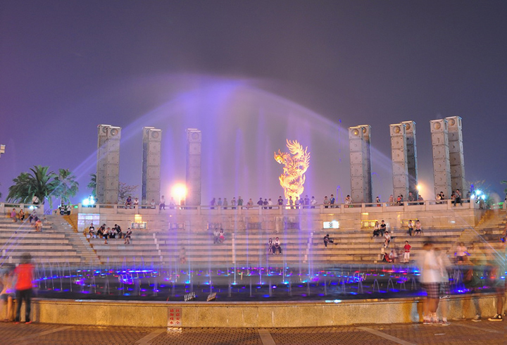 將演員、音樂、舞蹈、特技、藝術(shù)等表演形式有機結(jié)合。運用噴泉、水幕、激光、燈光、焰火、水霧、投影、舞臺機械構(gòu)建一個無限奇妙的視覺盛宴。